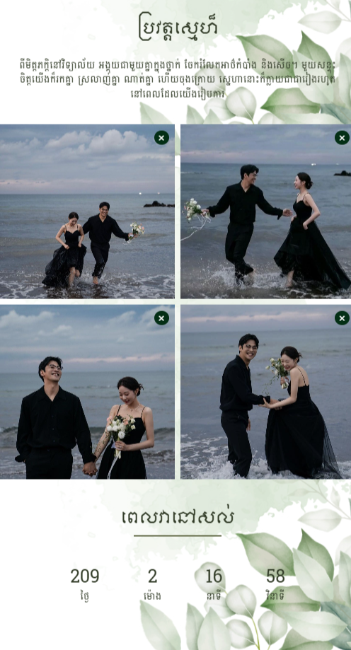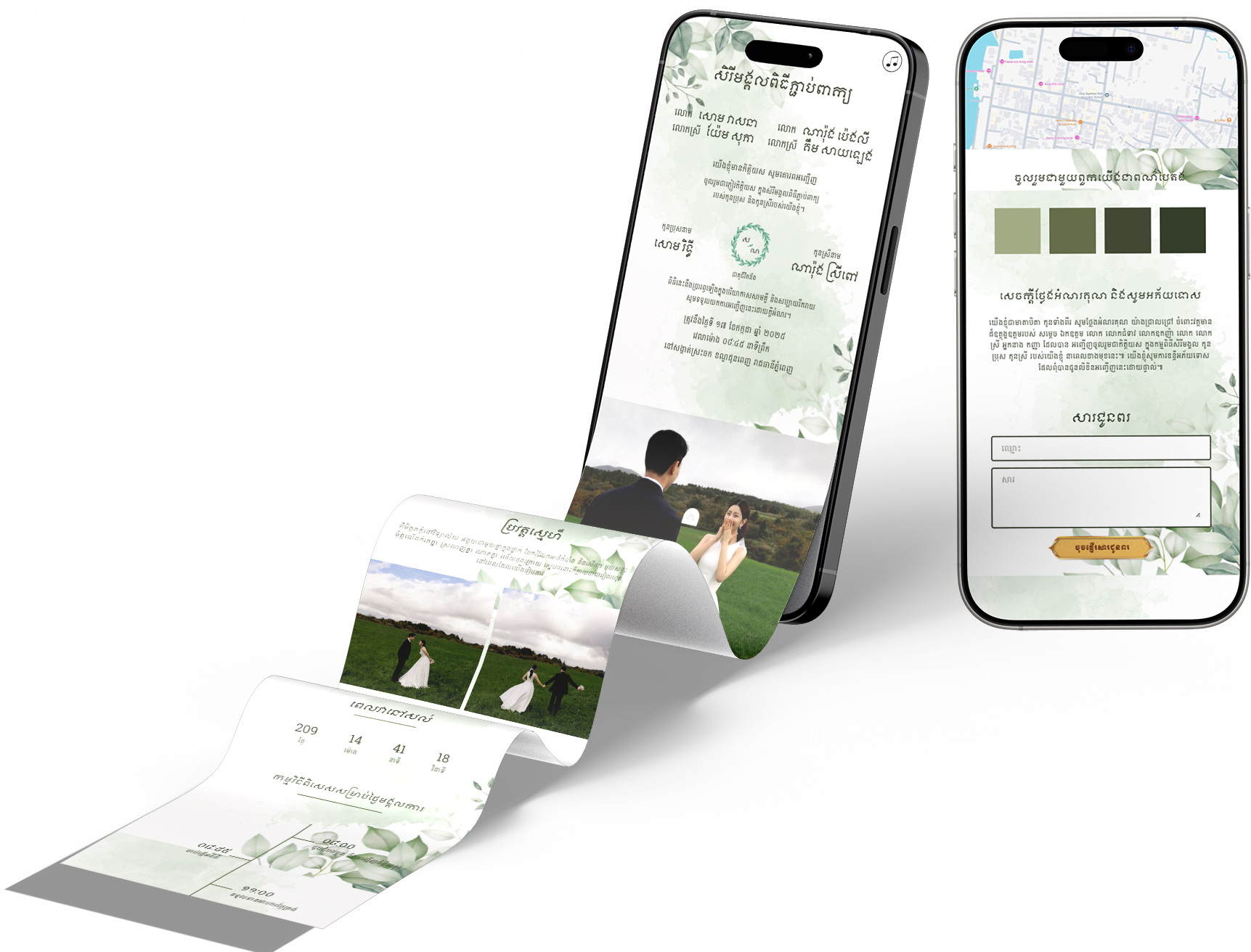គេហទំព័រសម្រាប់កម្មពីធីអាពាហ៍ពិពាហ៍ ថ្ងៃខួបកំណើត និងព្រឹត្តិការណ៍ពិសេសៗ ដោយរចនាស្រស់ស្អាតតាមបេះដូងអ្នក
